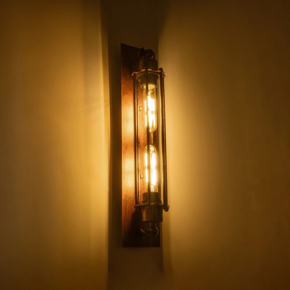 GLOBOSTAR® BESPOKE 01565 Vintage Φωτιστικό Τοίχου - Απλίκα με Ντουί 2 x E27 AC 220-240V IP20 - Χάλκινο Εφέ Σκουριάς - Μ10 x Π11 x Υ47cm