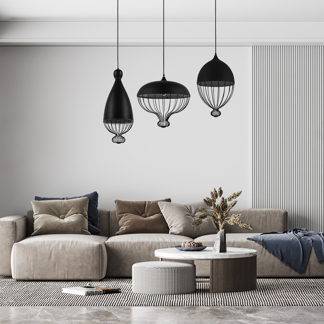 GLOBOSTAR® CARNEL 01106 Vintage Κρεμαστό Φωτιστικό Οροφής με Ντουί 1 x E27 AC 220-240V IP20 - Μαύρο - Μ26 x Π26 x Υ70cm