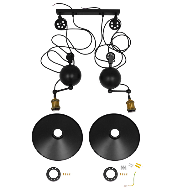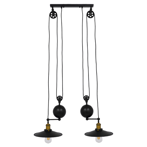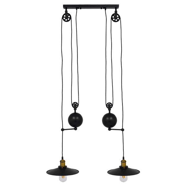 GLOBOSTAR® CARILO 01550 Vintage Κρεμαστό Φωτιστικό Οροφής με Ντουί 2 x E27 AC 220-240V IP20 - Μαύρο & Χρυσό - Μ72 x Π26 x Υ120cm