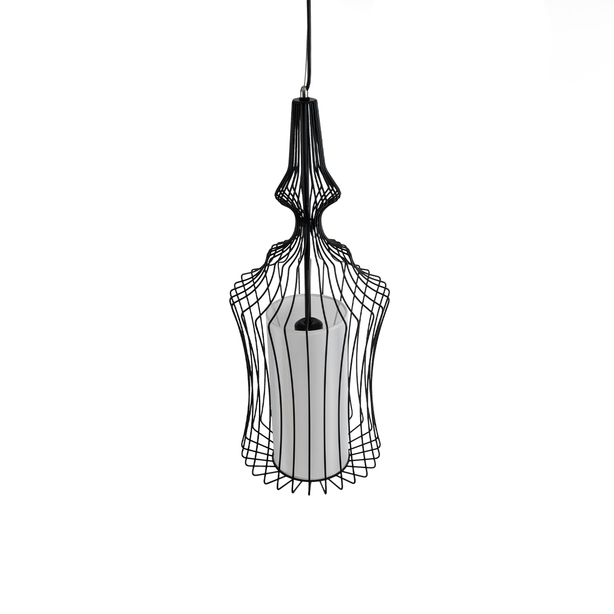 GLOBOSTAR® LILY 01559 Vintage Κρεμαστό Φωτιστικό Οροφής με Ντουί 1 x E27 AC 220-240V IP20 - Μαύρο & Λευκό - Μ25 x Π25 x Υ61cm