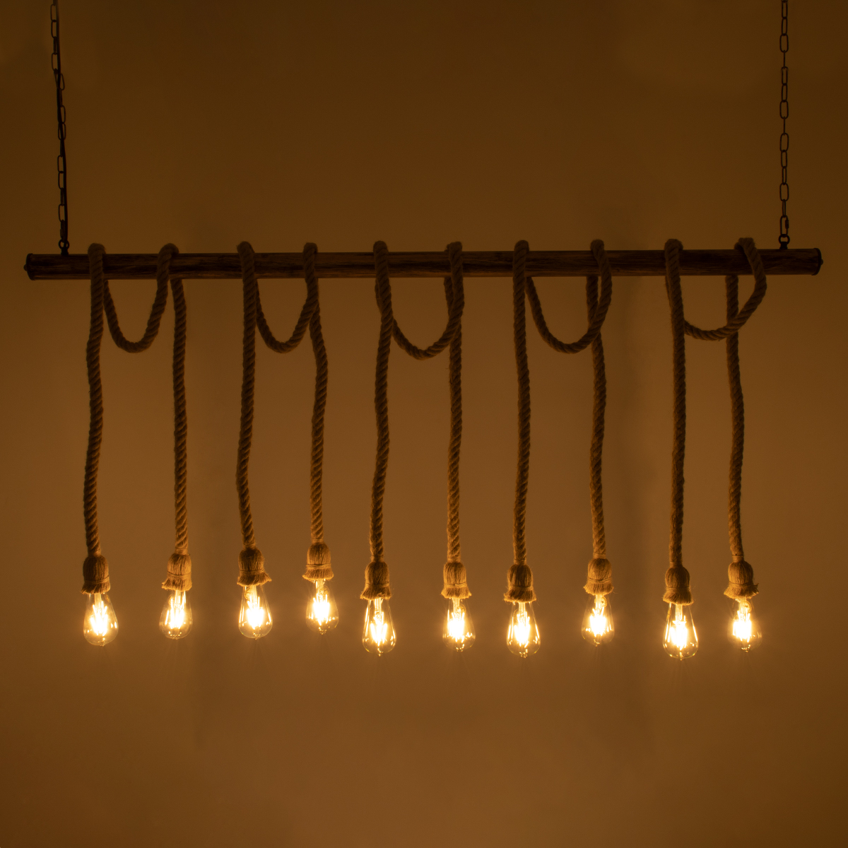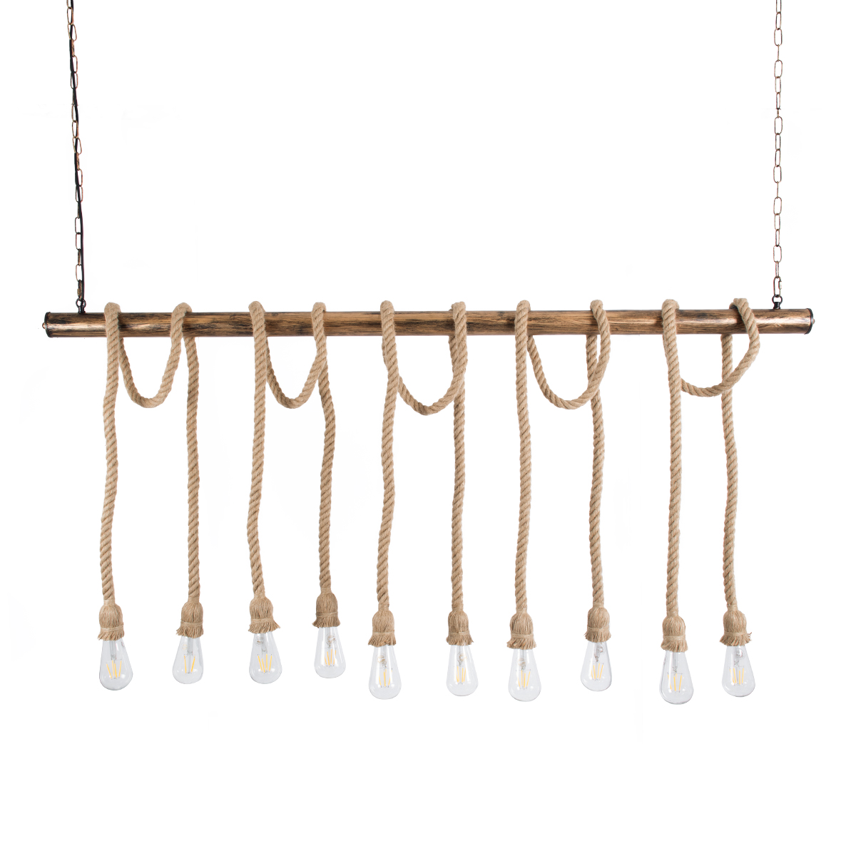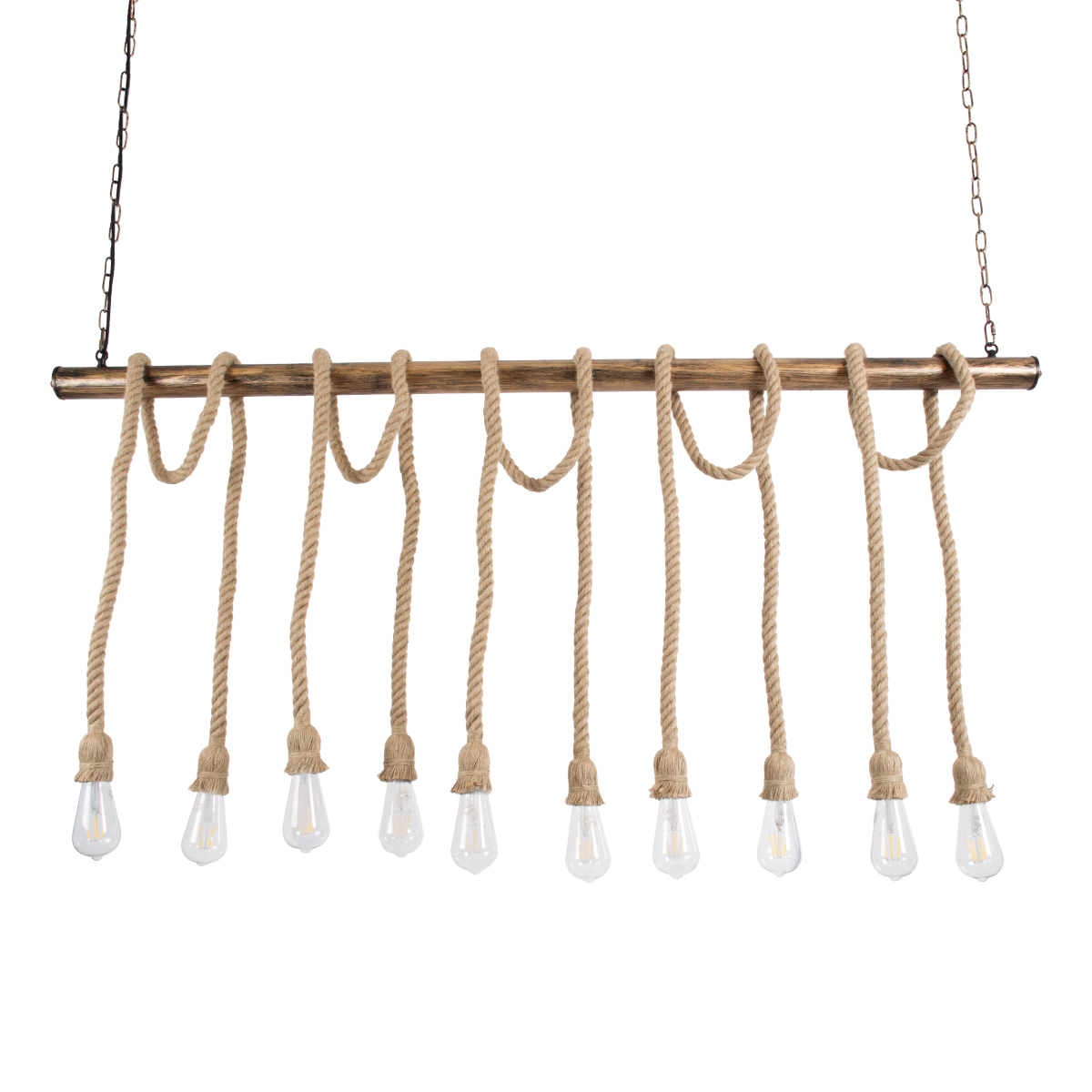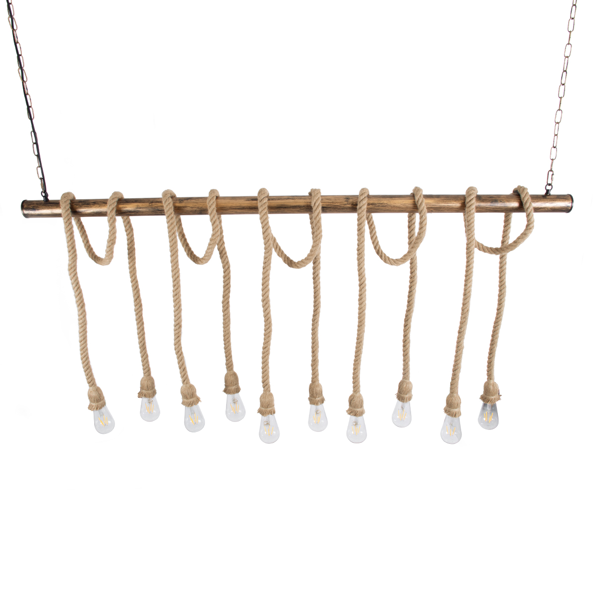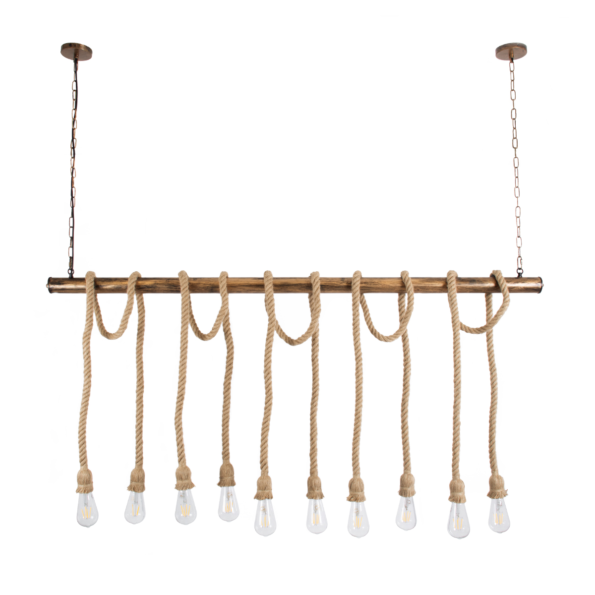 GLOBOSTAR® RAILROAD 01380 Vintage Κρεμαστό Φωτιστικό Οροφής με Ντουί 10 x E27 AC 220-240V IP20 - Μπεζ & Χάλκινο - Μ150 x Π4 x Y62.5cm