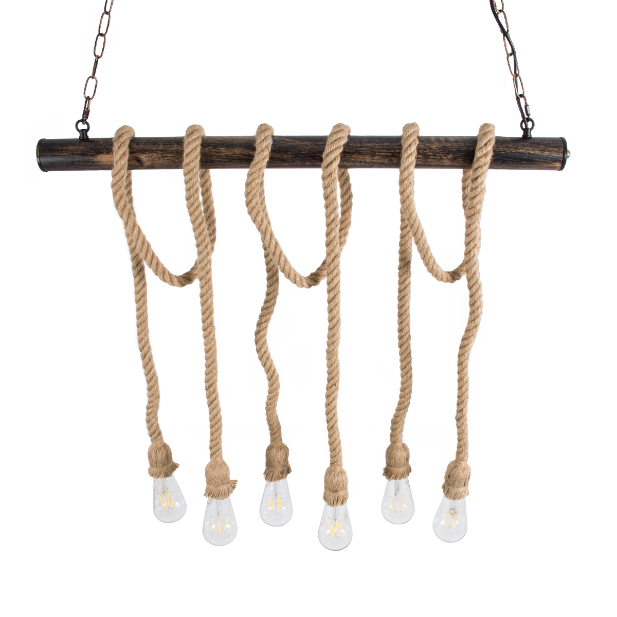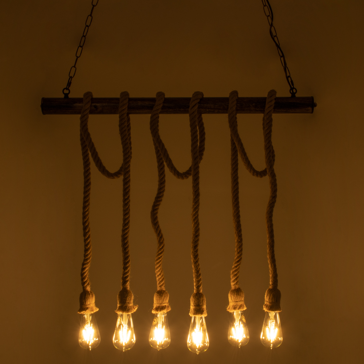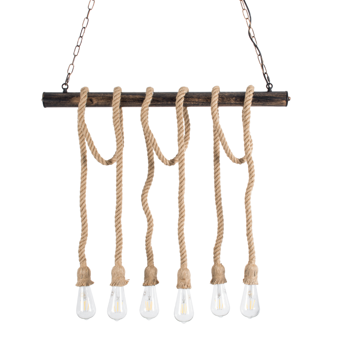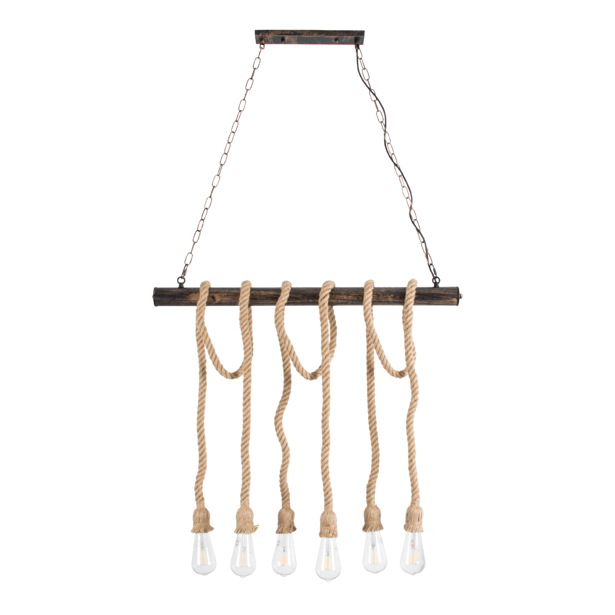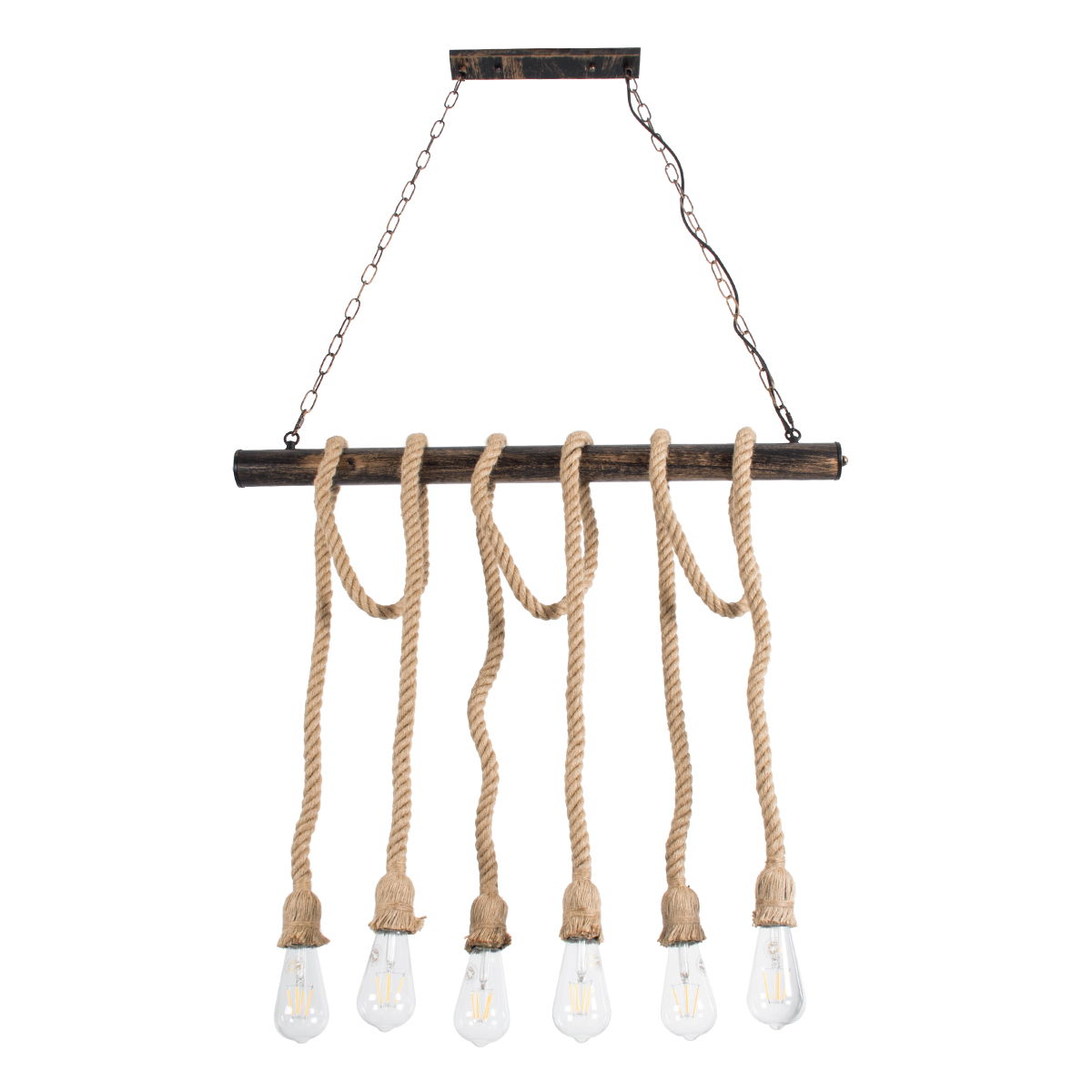 GLOBOSTAR® RAILROAD 01379 Vintage Κρεμαστό Φωτιστικό Οροφής με Ντουί 6 x E27 AC 220-240V IP20 - Μπεζ & Χάλκινο - Μ80 x Π4 x Y55cm