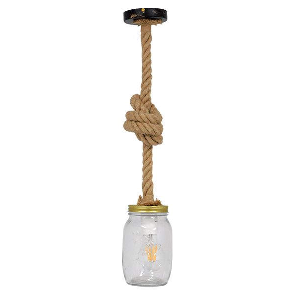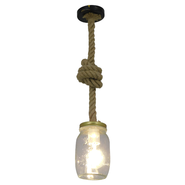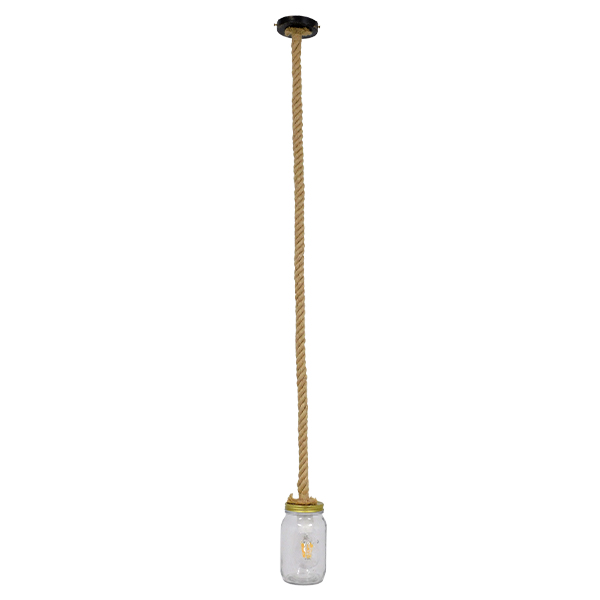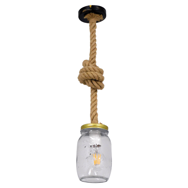 GLOBOSTAR® JAM 01128 Vintage Κρεμαστό Φωτιστικό Οροφής με Ντουί 1 x E27 AC 220-240V IP20 - Διάφανο & Μπεζ - Μ11 x Π11 x Υ120cm