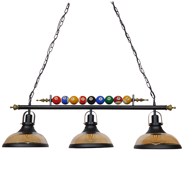 GLOBOSTAR® BILLIARD SERIES 01280 Vintage Κρεμαστό Φωτιστικό Οροφής με Ντουί 3 x E27 AC 220-240V IP20 - Μαύρο & Μελί - Μ96 x Π25 x Υ30cm