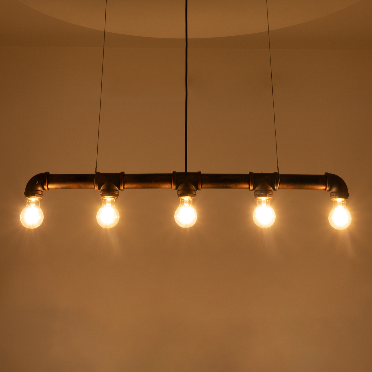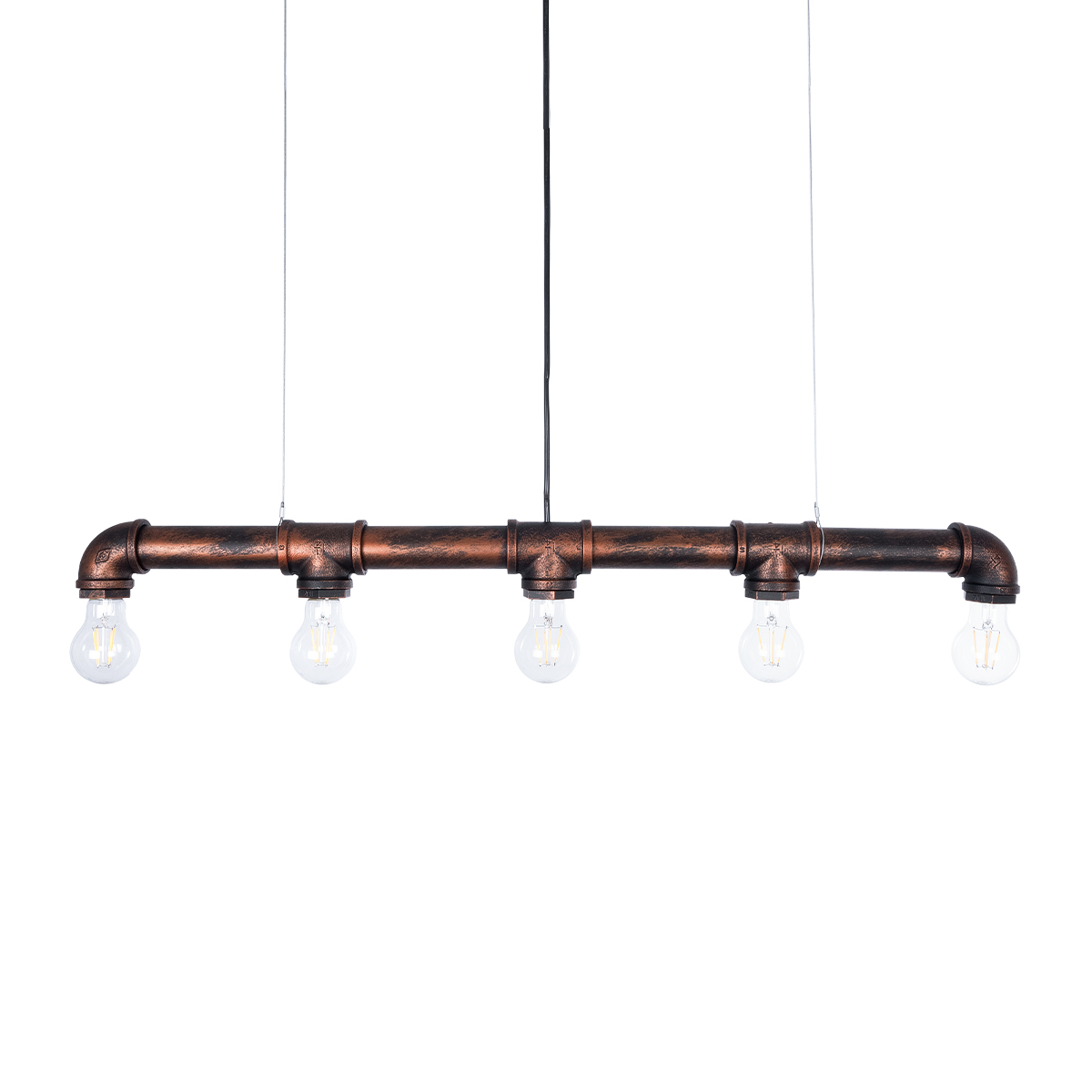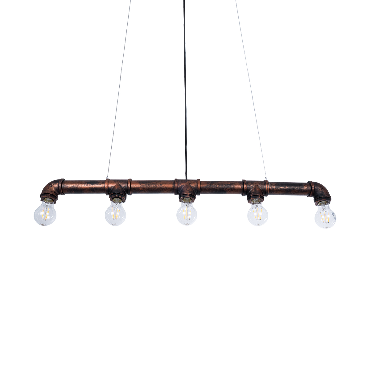 GLOBOSTAR® CANAL 01070 Vintage Κρεμαστό Φωτιστικό Οροφής με Ντουί 5 x E27 AC 220-240V IP20 - Χάλκινο Εφέ Σκουριάς - Μ88 x Π5 x Υ7cm