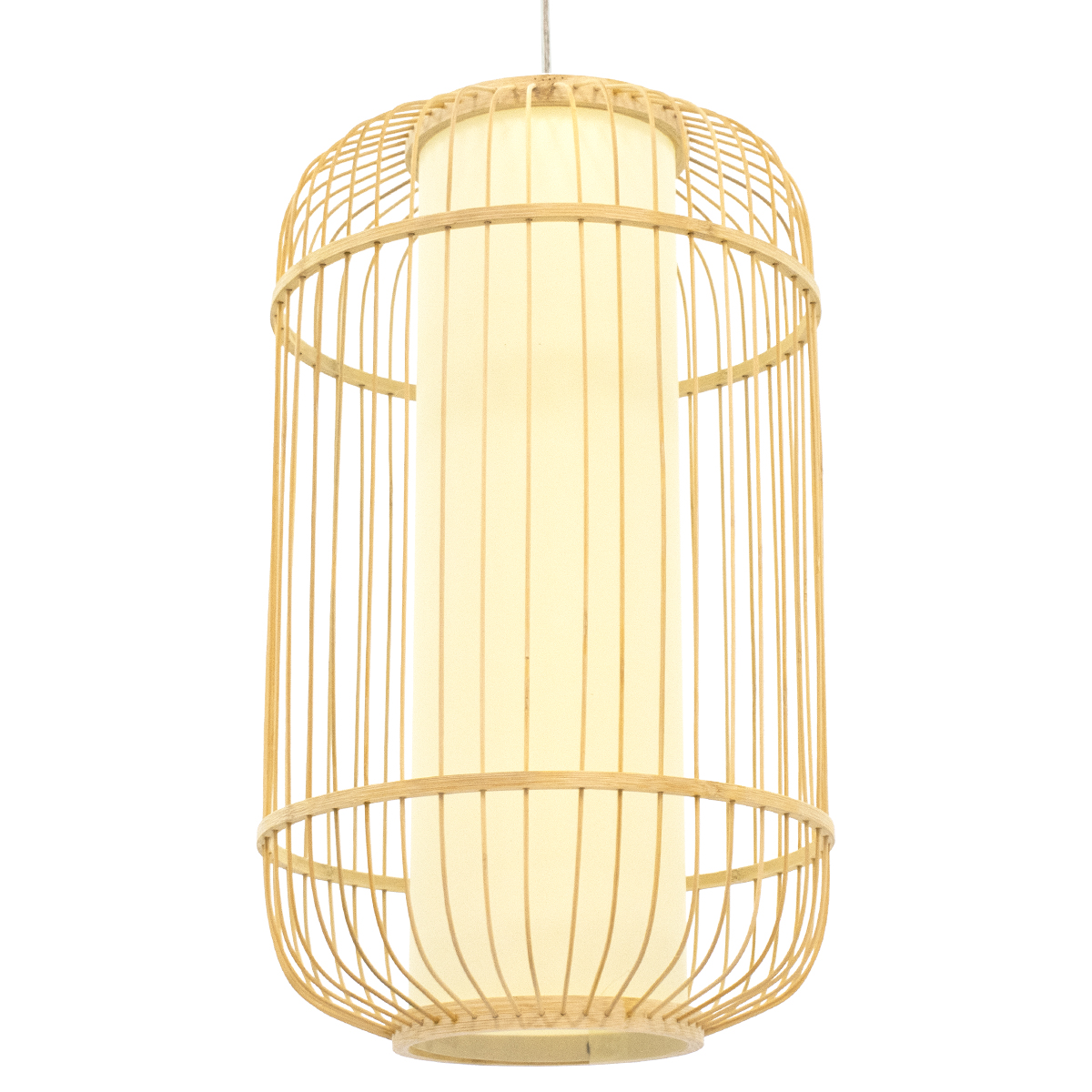 GloboStar® DE PARIS 00894 Vintage Κρεμαστό Φωτιστικό Οροφής Μονόφωτο Καφέ Ξύλινο Bamboo Φ30 x Υ50cm