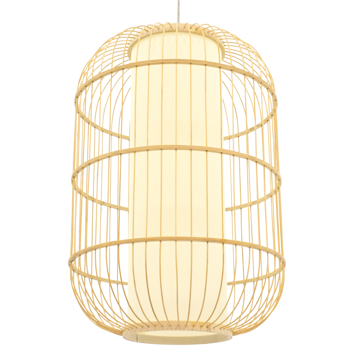 GloboStar® DE PARIS 00891 Vintage Κρεμαστό Φωτιστικό Οροφής Μονόφωτο Καφέ Ξύλινο Bamboo Φ40 x Υ60cm