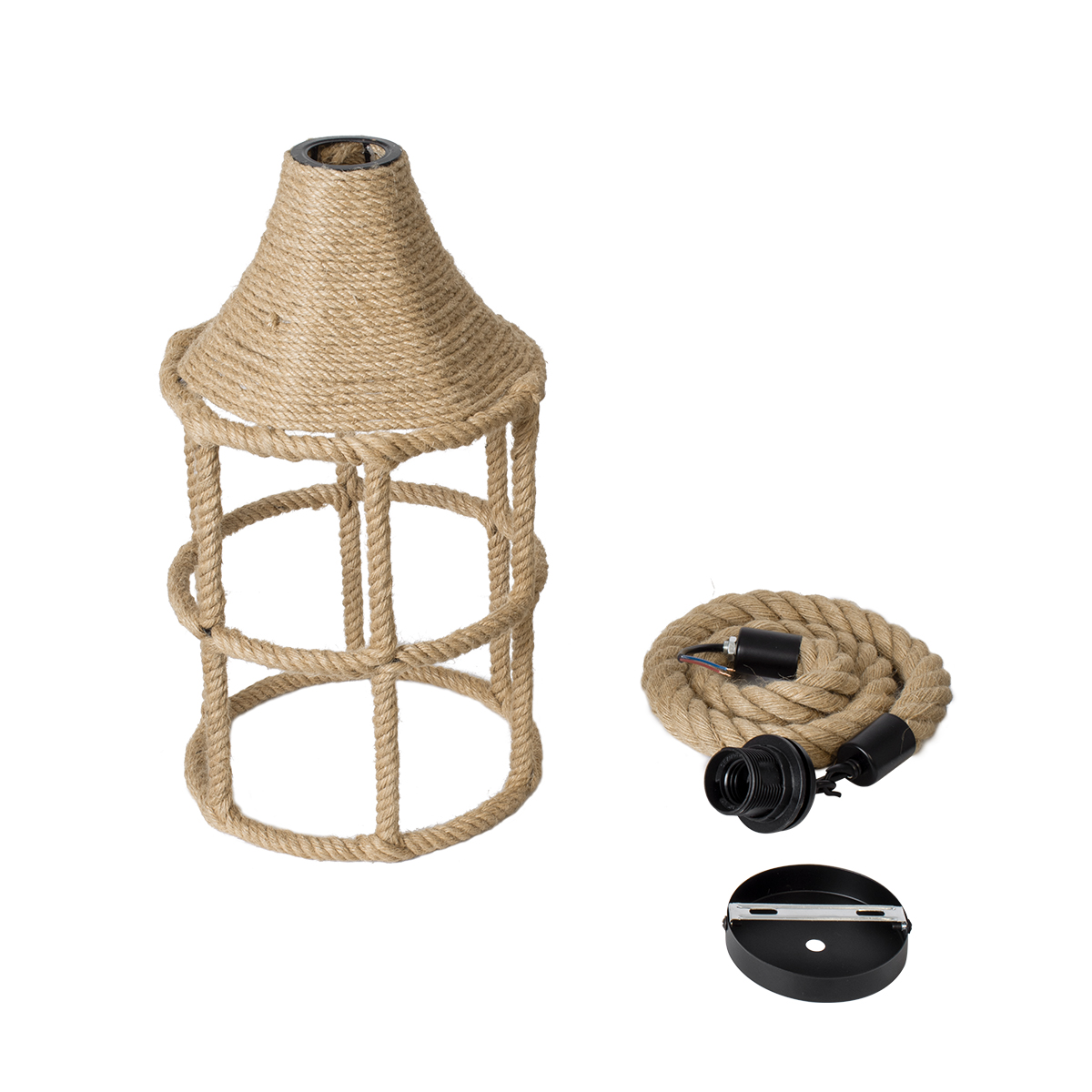 GLOBOSTAR® YUBA 01612 Boho Κρεμαστό Φωτιστικό Οροφής με Ντουί 1 x E27 AC 220-240V IP20 - Μπεζ - Μ22 x Π22 x Y40cm