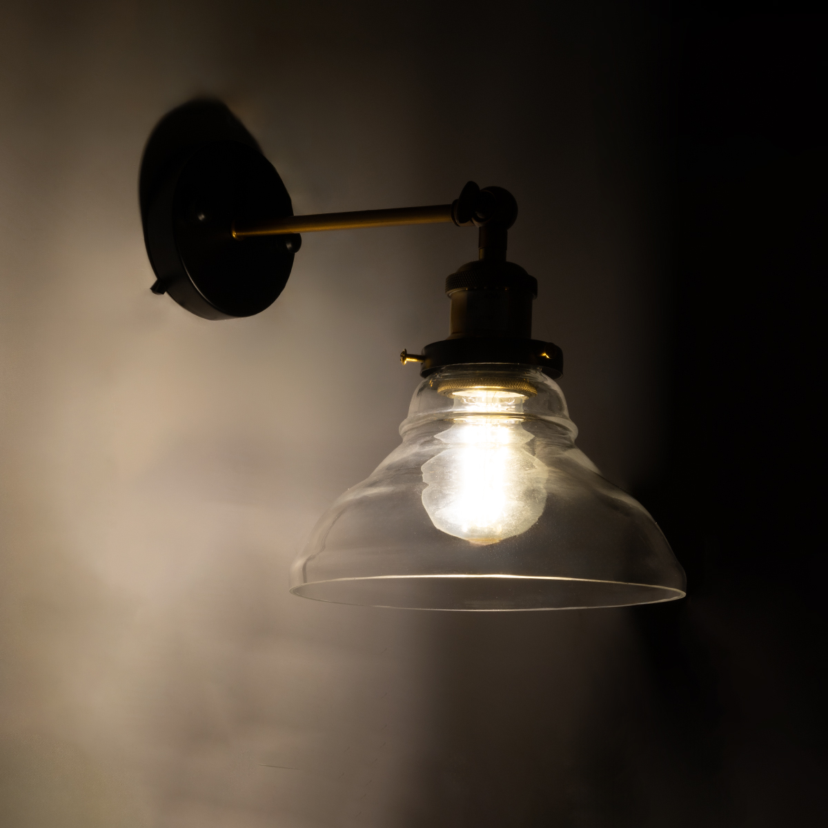 GLOBOSTAR® BINGLEY 01159 Vintage Φωτιστικό Τοίχου - Απλίκα με Ντουί 1 x E27 AC 220-240V IP20 - Διάφανο & Χρυσό - Μ19 x Π30 x Υ24cm