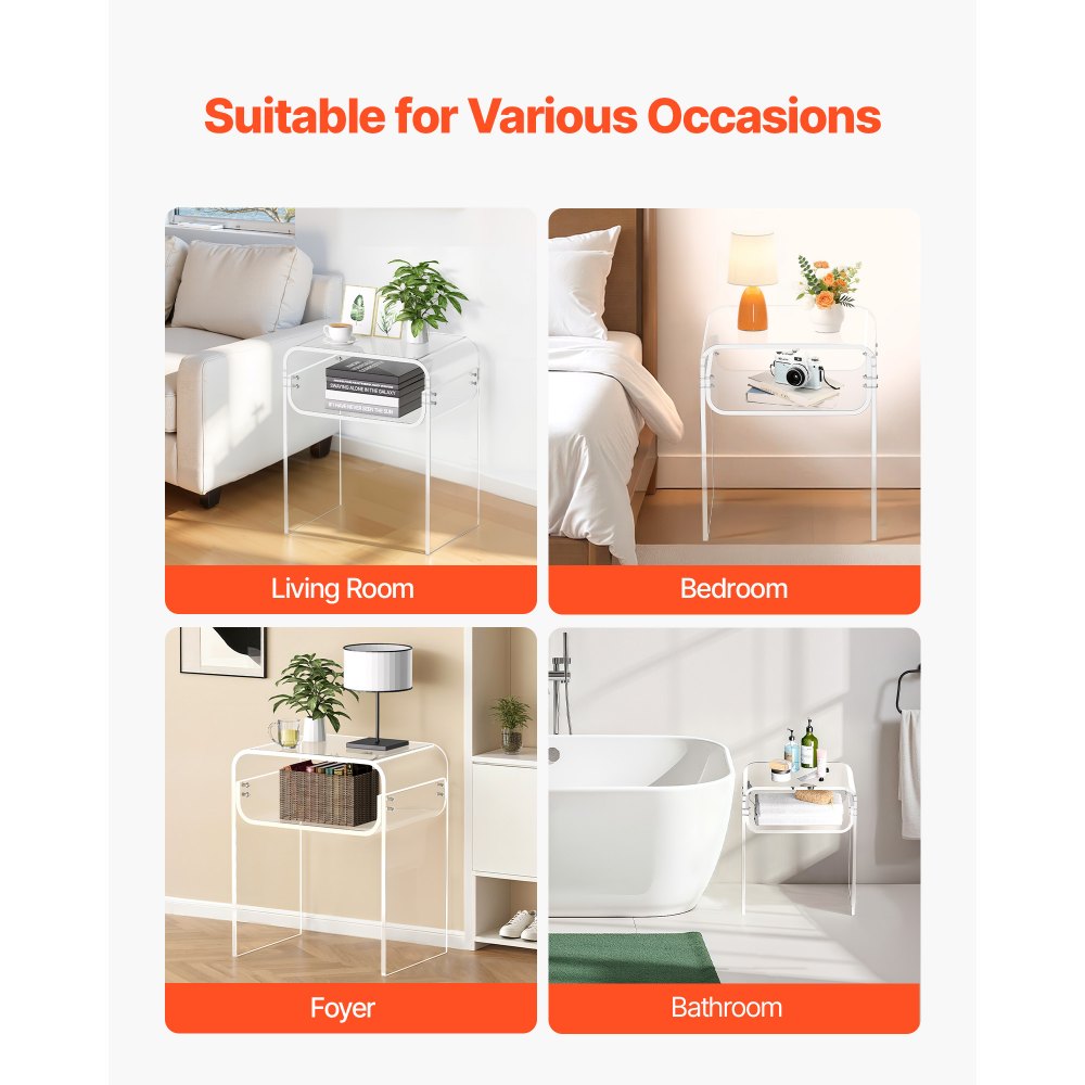 Φυσικό ακρυλικό υλικό: Κατασκευασμένο από υψηλής ποιότητας ακρυλικό, αυτό το ακρυλικό τραπέζι έχει μια κρυστάλλινη επιφάνεια που παραμένει φωτεινή με την πάροδο του χρόνου. Πιο ανθεκτικό στις κρούσεις από το σκληρυμένο γυαλί, αποτελεί μια ασφαλή και στιβαρή επιλογή, ειδικά για σπίτια με παιδιά και κατοικίδια. Σταθερό και στιβαρό: Η επιφάνεια πάχους 0,4 ίντσας 1 cm υποστηρίζει έως και 10 κιλά στο πάνω ράφι και 5 κιλά στο κάτω. Τα στιβαρά πόδια εξασφαλίζουν μακροχρόνια ανθεκτικότητα, παρέχοντας ισχυρή στήριξη για καθημερινά αντικείμενα. Διπλός Χώρος Αποθήκευσης: Αυτό το ακρυλικό γραφείο διαθέτει ευρύχωρο αποθηκευτικό χώρο 2 επιπέδων για μικρά αντικείμενα και διακοσμητικά. Η διαφανής επιφάνεια του τραπεζιού παρέχει ανεμπόδιστη θέα, διευκολύνοντας την εύρεση ό,τι χρειάζεστε—ιδανικό ως βοηθητικό τραπεζάκι, μικρό τραπεζάκι σαλονιού ή κομοδίνο. Εύκολη συναρμολόγηση και καθάρισμα: Το εξάρτημα και οι οδηγίες κάνουν τη συναρμολόγηση γρήγορη. Για συντήρηση, σκουπίστε με νερό ή ακρυλικό καθαριστικό. (Σημείωση: Αφαιρέστε την προστατευτική μεμβράνη μετά τη συναρμολόγηση. Μην χρησιμοποιείτε οινόπνευμα για τον καθαρισμό και αποφύγετε τη μακροχρόνια έκθεση στο ηλιακό φως σε εξωτερικούς χώρους.) Ταιριάξτε με το στυλ του σπιτιού σας: Το ακρυλικό βοηθητικό τραπεζάκι μας έχει κρυστάλλινη λάμψη με έως και 92% μετάδοση φωτός. Η διαφάνειά του δημιουργεί ανοιχτότητα, ακόμη και σε μικρότερους χώρους. Συνδυάζεται με διάφορα στυλ σπιτιού, ιδανικά για σαλόνια, υπνοδωμάτια, εισόδους ή μπάνια.