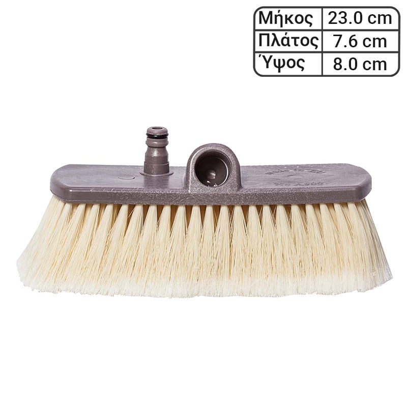 Τοποθετείστε λάστιχο κήπου στην υποδοχή. Εκτοξεύει στοχευμένη πίεση για ταυτόχρονο βούρτσιμα και πλύση. Οι τρίχες της βούρτσας είναι μαλακές.