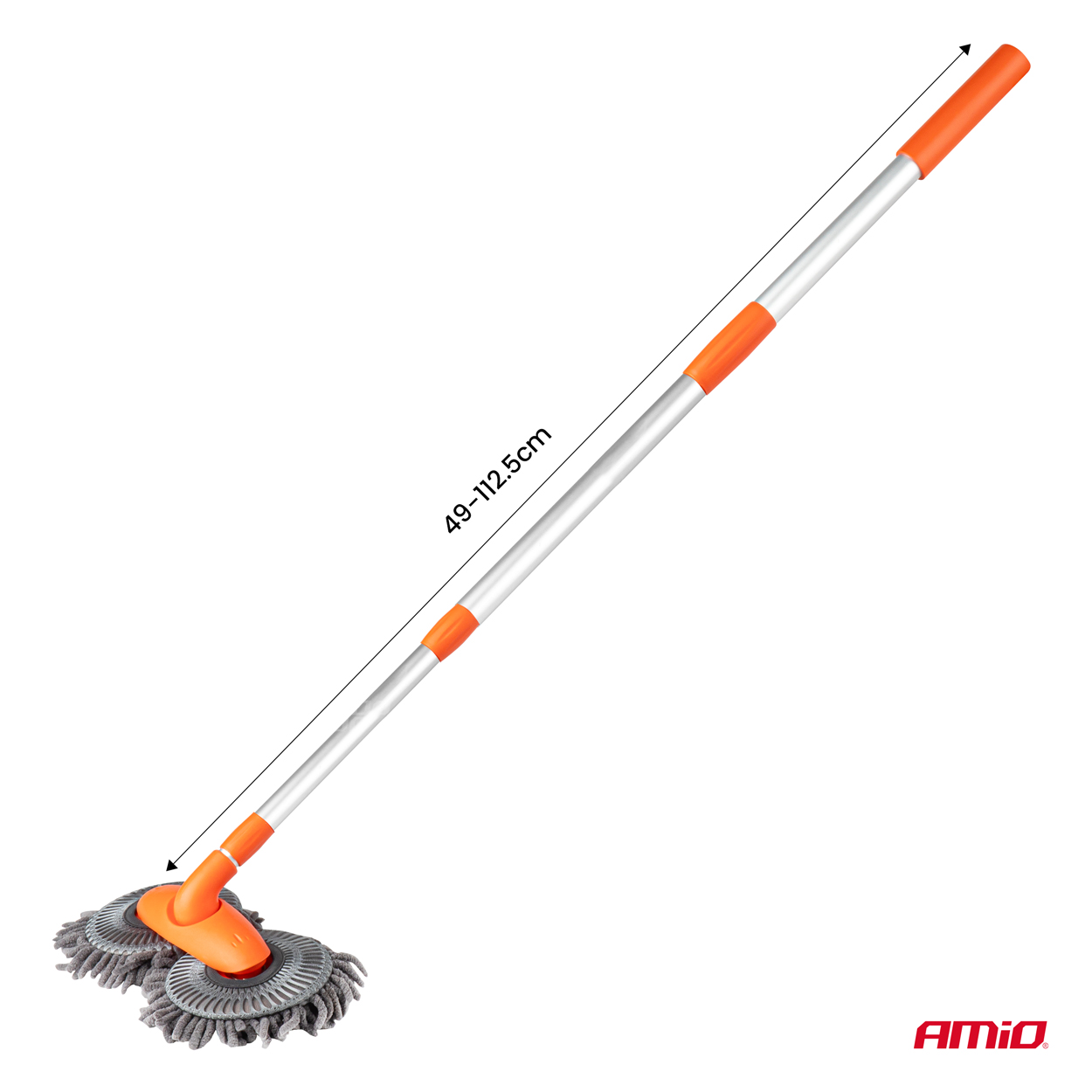 ΒΟΥΡΤΣΑ ΠΛΥΣΙΜΑΤΟΣ ΜΕ ΤΗΛΕΣΚΟΠΙΚΟ ΚΟΝΤΑΡΙ 49-112.5cm ΠΕΡΙΣΤΡΕΦΟΜΕΝΗ ΜΙΚΡΟΦΙΜΠΡΑ ΑΜΙΟ - 1 ΤΕΜ. Βούρτσα πλυσίματος από την εταιρεία ΑΜΙΟ, πολωνικής προέλευσης. -Περιστρεφόμενη κεφαλή: Διευκολύνει τον καθαρισμό δυσπρόσιτων σημείων προσαρμόζοντας σε διαφορετικές γωνίες και επιφάνειες. -Μικροΐνες Premium (29x15 cm): Μαλακό, απαλό στη βαφή, αφαιρεί αποτελεσματικά τη βρωμιά, τη σκόνη και τους ρύπους χωρίς τον κίνδυνο γρατσουνίσματος. -Τηλεσκοπική λαβή (49 - 112,5 cm): Το ρυθμιζόμενο μήκος επιτρέπει το άνετο πλύσιμο τόσο της οροφής όσο και των κάτω τμημάτων του οχήματος - χωρίς να χρειάζεται να σκαρφαλώσετε ή να σκύψετε. -Ιδανικό για τον καθαρισμό αυτοκινήτων, μοτοσικλετών, τροχόσπιτων, σκαφών, καθώς και παραθύρων και επιφανειών σπιτιού. -Η κεφαλή μικροϊνών μπορεί εύκολα να αφαιρεθεί και να πλυθεί. Διευκολύνει το σχολαστικό πλύσιμο του οχήματος σε λιγότερο χρόνο. Ασφαλές για βαφές και ευαίσθητες επιφάνειες. Ελαφρύ και άνετο στη χρήση - ιδανικό για κάθε χρήστη. Συσκευασία 1 τεμαχίου