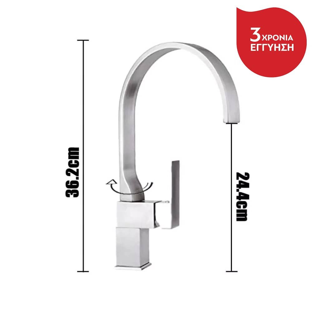 Ποιοτική Βρύση Κουζίνας από την Bluewater σε πολυτελές σατινέ φινίρισμα! Περιλαμβάνει 2 σπιράλ σύνδεσης 45cm ΧΑΡΑΚΤΗΡΙΣΤΙΚΑ ΣΥΝΟΛΙΚΟ ΜΗΚΟΣ: 362mm ΜΗΚΟΣ ΕΩΣ ΤΟ ΡΥΓΧΟΣ: 244mm ΕΥΡΟΣ ΡΥΓΧΟΥΣ: 205mm ΒΑΡΟΣ: 2.38KG