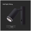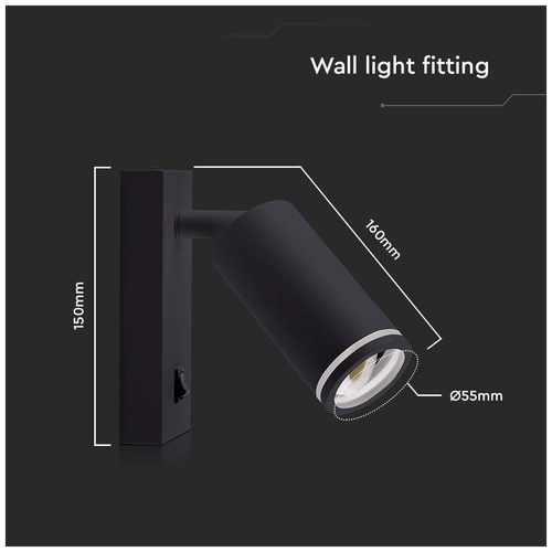 V-TAC Επιτοίχιο Φωτιστικό Σποτ Κομοδίνου για GU10 LED IP20 με Διακόπτη Μαύρο Σώμα 10294