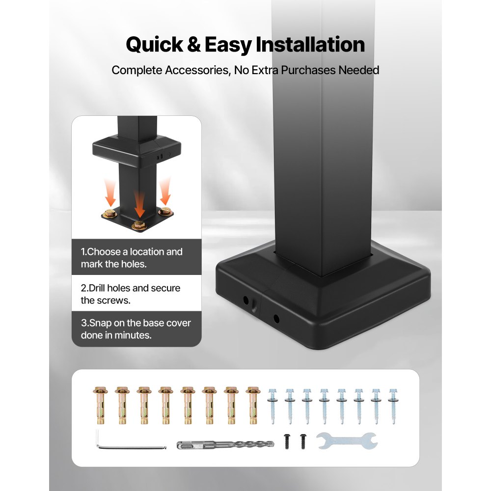 Χωρητικότητα φορτίου 100 κιλών: Αυτό το ανθεκτικό κιγκλίδωμα εξωτερικής σκάλας εξασφαλίζει ασφάλεια για ηλικιωμένους και έγκυες γυναίκες με παχύτερη λαβή για άνεση. ΣΗΜΕΙΩΣΗ: Μετρήστε την απόσταση από το κέντρο της σκάλας και τη διαφορά ύψους για να βεβαιωθείτε για τη συμβατότητα πριν από την αγορά. Ιδανικό για 2-3 σκαλοπάτια: Τα κιγκλιδώματα μας για εξωτερικά σκαλοπάτια είναι κατάλληλα για να φιλοξενήσουν επίπεδα 2-3 σκαλοπατιών. Είναι ιδανικά για διάφορες εφαρμογές, όπως κατώφλια, εισόδους γκαράζ και κιγκλιδώματα κήπου, εξασφαλίζοντας μια ευέλικτη εφαρμογή. Εύκολη εγκατάσταση: Διαθέτοντας βίδες διαστολής για διπλή ενίσχυση, αυτό το εξωτερικό κιγκλίδωμα για σκαλοπάτια εξασφαλίζει βελτιωμένη σταθερότητα. Το εγχειρίδιο που περιλαμβάνεται σας καθοδηγεί στη διαδικασία εγκατάστασης, καθιστώντας την γρήγορη και απλή. Ευέλικτη χρήση: Σχεδιασμένα για εξωτερικές σκάλες, αυτά τα εξωτερικά κιγκλιδώματα για σκαλοπάτια μπορούν να εγκατασταθούν σε σκυρόδεμα, ξύλο, πλακάκια, μάρμαρο και άλλες συμπαγείς επιφάνειες. Το μοναδικό τους στυλ συμπληρώνει μια ποικιλία τύπων σκάλας, βελτιώνοντας τη λειτουργικότητα και την εμφάνιση. Πλήρη αξεσουάρ: Αυτή η εξωτερική κουπαστή σκαλοπατιού συνοδεύεται από ένα πλήρες σετ υλικού εγκατάστασης, εξασφαλίζοντας μια ασφαλή και σταθερή εγκατάσταση. Το ολοκληρωμένο σετ υλικού διευκολύνει την ομαλή και αποτελεσματική εγκατάσταση.