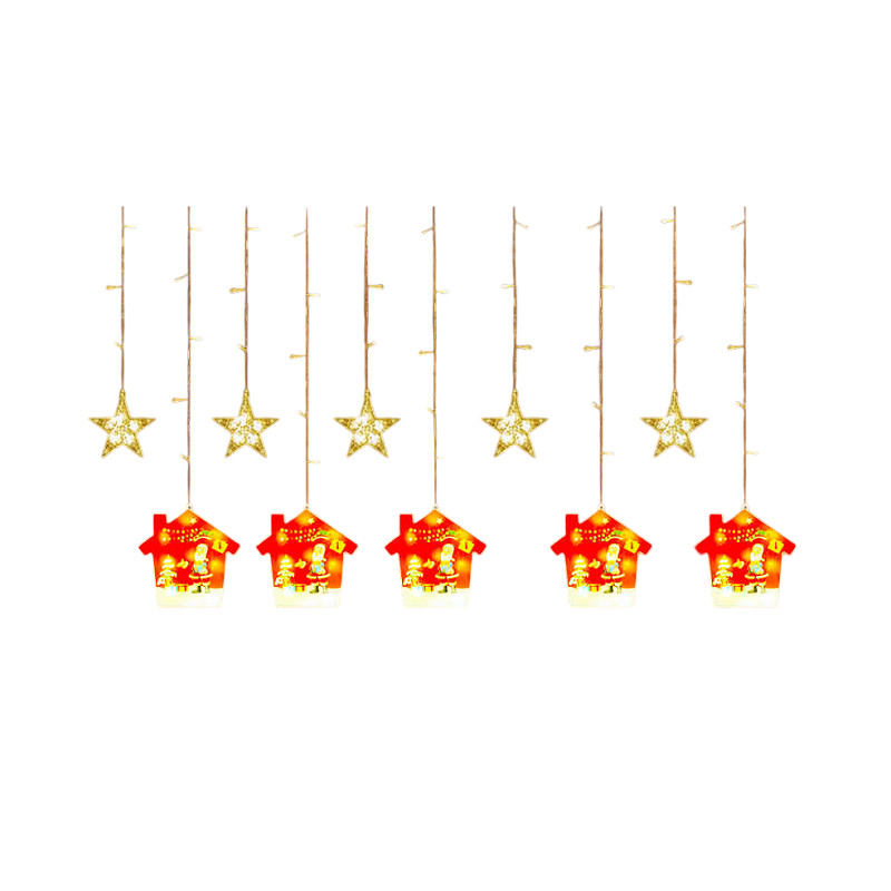 Χριστουγεννιάτικα διακοσμητικά φώτα LED τύπου κουρτίνα με σχέδιο σπιτάκια και αστέρια.
