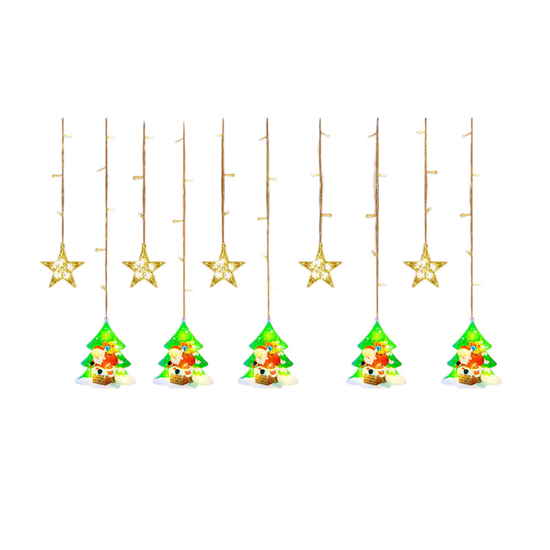 Χριστουγεννιάτικα διακοσμητικά φώτα LED τύπου κουρτίνα με σχέδιο έλατα και αστέρια.
