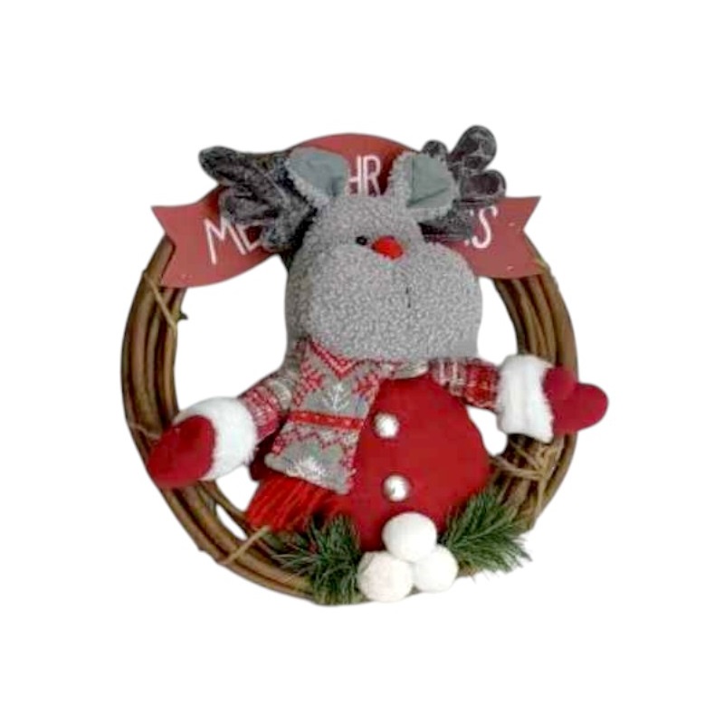 Χριστουγεννιάτικο διακοσμητικό κρεμαστό στεφάνι με φιγούρα - 30x30cm - 212184