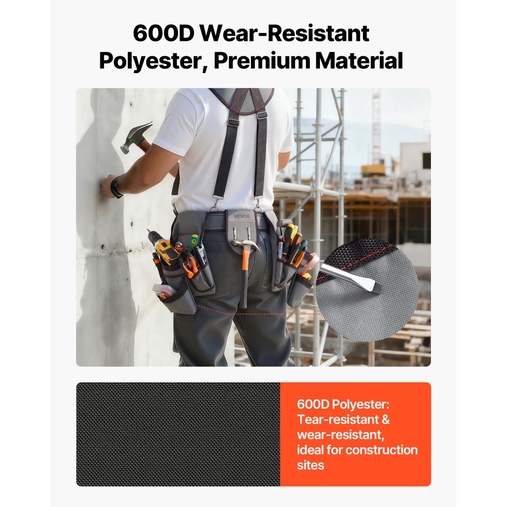 Αποθήκευση με 22 τσέπες: Η ζώνη εργαλείων μας διαθέτει 22 τσέπες για να οργανώνετε σφυριά, κατσαβίδια, πένσες, μετροταινίες και καρφιά. Βρείτε γρήγορα εργαλεία, εξοικονομώντας χρόνο και ενισχύοντας την αποδοτικότητα—ιδανικό για ξυλουργικές εργασίες, ηλεκτρολογικές εργασίες και εργοτάξια. Ρυθμιζόμενη μέση: Αυτή η ζώνη εργαλείων ξυλουργού υποστηρίζει ρύθμιση μέσης 31,89–68,11 ίντσες με ανθεκτική αγκράφα και συρόμενο ρυθμιστή για άνετη εφαρμογή. Προσαρμόζεται εύκολα σε μπουφάν ή ρούχα εργασίας, διατηρώντας τη ζώνη σταθερή κατά το σκύψιμο, την αναρρίχηση ή την κίνηση. Εργονομική άνετη ζώνη μέσης: Η διευρυμένη, παχύτερη ζώνη εργαλείων κατανέμει ομοιόμορφα το βάρος και μειώνει την καταπόνηση. Παραμένει ασφαλής και άνετη κατά τη διάρκεια μεγάλης, έντονης εργασίας, αποφεύγοντας τη συστολή και την κόπωση, βοηθώντας τους εργαζομένους να συγκεντρωθούν και ενισχύοντας την αποδοτικότητα. Ανθεκτικό στην τριβή και το σχίσιμο: Με ενισχυμένο πολυεστέρα 600D με διπλές ραφές και δεμένες άκρες, η ζώνη εργαλείων Framers μας αντιστέκεται στη φθορά, το σχίσιμο, το κρέμασμα και το τσαλάκωμα ακόμα και κάτω από βαριά εργαλεία, με πλήρες φορτίο ή σε κατασκευές. Κατασκευασμένο για επαγγελματίες και ερασιτέχνες. Ευέλικτη χρήση: Ιδανική για ξυλουργούς, ηλεκτρολόγους, εργάτες οικοδομών και ερασιτέχνες, αυτή η ζώνη εργαλείων κατασκευών διατηρεί τα εργαλεία σας οργανωμένα και χωρίς χέρια. Κατάλληλη για βαριές εργασίες ή επισκευές στο σπίτι, προσφέρει αποτελεσματική, ολοκληρωμένη λειτουργικότητα.